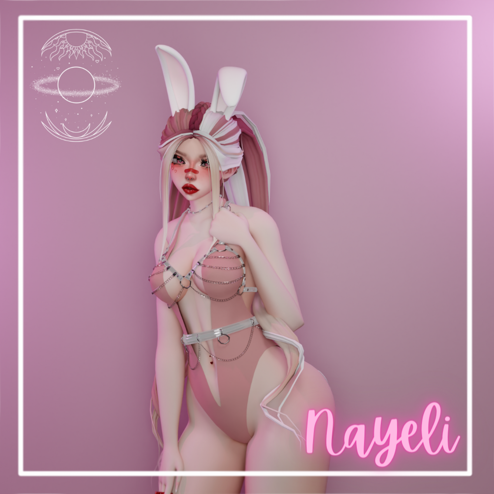 ♡ Fun Stuff : HeadPats - White hearts come out of Nayeli's head when you give her pats and she makes a happy face. BunnyCharm - Nayeli is accompanied by a cute lil chubby bunny charm on her left pointer finger (You can swing it around, mess with its ears and change its colors!) Condom - Rest assured that you'll keep "snuggling" safe. (Nayeli holds a condom between her fingers) EarPull - Pull Nayeli's ears and she makes a face (Careful, she might like it)